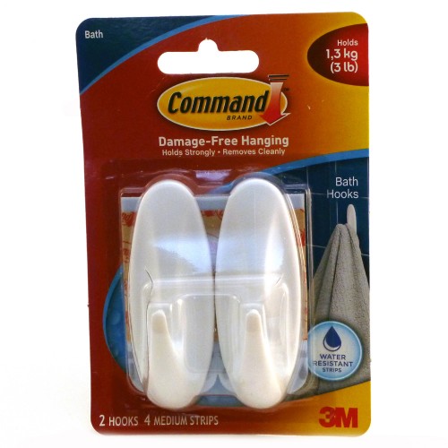 Command™ Hooks are available in a wide range of designs to match your individual style and decor. They also come in a variety of sizes and hold a surprising amount of weight - up to seven and a half pounds! Forget about nails, screws and tacks, Command™ Hooks are fast and easy to hang! Using the revolutionary Command™ Adhesive, holds strongly on a variety of surfaces, including paint, wood, tile and more. Yet, removes cleanly - no holes, marks, sticky residue or stains. Rehanging them is as easy as applying a replacement Mounting™ Strip, so you can take down, move and reuse them again and again!