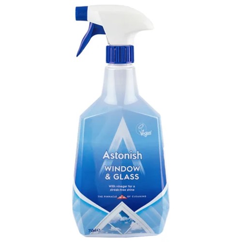 A powerful window and glass cleaner with the sparkling power of vinegar. The easy spray on- wipe off formula removes tough stains and grease to leave a non smear, crystal clear finish.