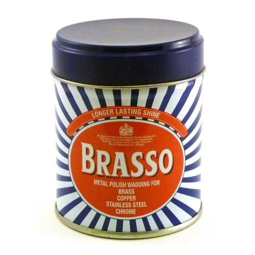 Brasso cleans, polishes and protects brass, copper, chrome, stainless steel, pewter, bronze and aluminum by leaving a smooth, polished surface and a brilliant shine. Use on brass beds, brass rails, brass lamps, brass door handles, metal, chrome and stainless steel appliances, metal carpet rods, metal furniture, copper bottom cookware and stainless steel sinks.