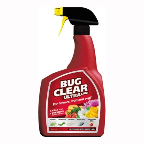 Bug Clear Ultra kills all major ornamental insect pests including whitefly, blackfly, greenfly and other aphids, scale insects and mealy bugs. It is a simple dilute and spray formulation that should be used outdoors, in conservatories and greenhouses to kill on contact whilst protecting against new bug attacks.