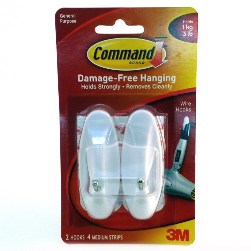 Command™ Hooks are avaliable in a wide range of designs to match your individual sytle and decor. They also come in a variety of sizes and hold a suprising amount of weight. Forget about nails, screws and tacks, Command™ Hooks are fast and easy to hang. Using the revolutionary Command™ Adhesive, hold strongly on a variety of surfaces, including paint, wood, tile and more. They also removes cleanly - no holes, marks, sticky residue or stains. Rehanging them is as easy as applying a replacement Mounting™ Strip, so you can take down, move and reuse them again and again!