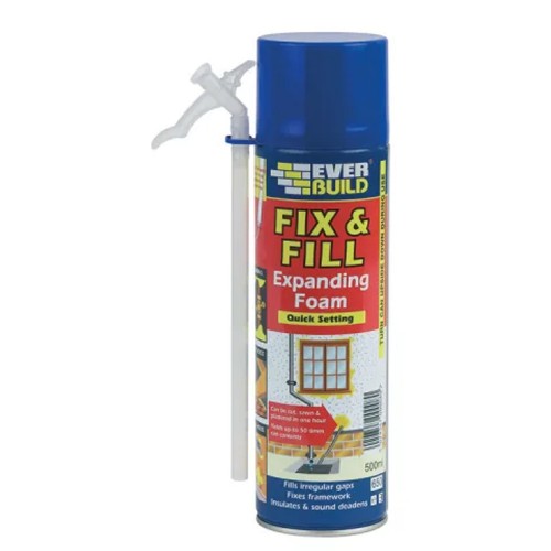 Everbuild fix & fill expanding foam is a quick setting polyurethane based foam which expands greatly on application and yields up to 50 times original can contents. Can be cut, sawn, plastered and sealed over after approximately one hour. Fills irregular gaps, fixes framework, insulates and sound deadens. Cans are fully litho printed for effective display. Gloves are included in the cap.