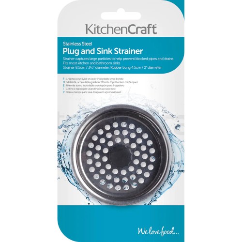 Help prevent blocked pipes and drains with the stainless steel strainer, perfect for capturing large particles. The sink plug is fitted with a stainless steel chain and will fit most universal kitchen and bathroom sinks.