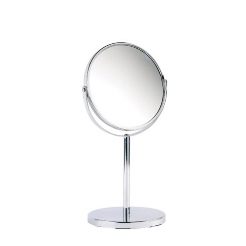 This stylish chrome plated round swivel mirror is double sided with a magnifying mirror on one side.