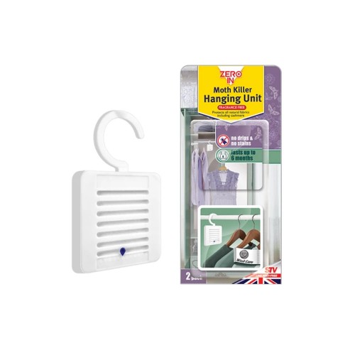 This Moth Killer Hanging Unit provides continuous effective protection against moths, their eggs and larvae for up to 6 months. It can be used to protect clothes in wardrobes, cupboards, drawers, suitcases and airing cupboards. Containing transfluthrin, the hanging unit has no unpleasant smells, no drips and it is non-staining.