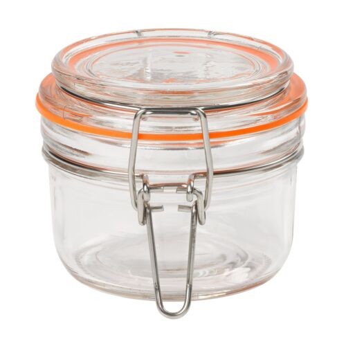 This storage jar features the classic airtight lever arm sealing mechanism. It is ideal for storage or homemade preserves and pickles and holds approximately 200ml. Not dishwasher safe.
