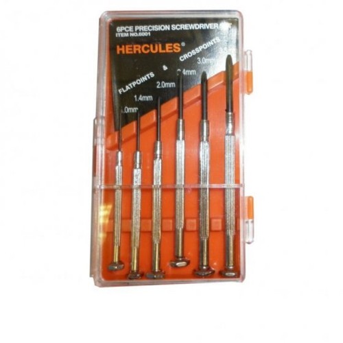 6 small scredrivers, a mixture of cross and flat heads, perfect for those tiny annoying screws in remote controls, watches and other small devices.